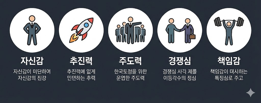 | 추진력 | 목표를 세우고 실행으로 옮기는 행동 중심형 |