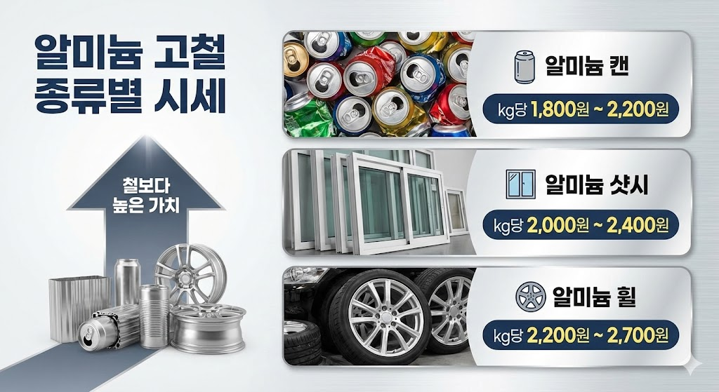 - 알미늄 古鐵 은 철보다 3~4배 높은 가격대를 형성합니다.