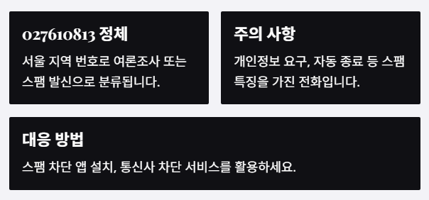A. 통신사 고객센터나 스팸 차단 앱(후후, T전화 등)을 이용해 027610813을 차단하면 됩니다.