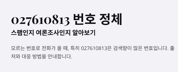최근 모르는 번호로 전화가 오면 괜히 긴장될 때가 있습니다. 그중에서도 027610813이라는 번호는 검색량이 많은 전화 중 하나입니다.