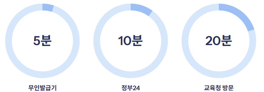 구분 정부24 온라인 교육청방문 무인민원발급기