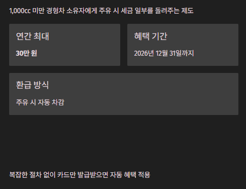 경차 유류세 환급제는 복잡한 절차 없이 카드 한 장으로 바로 혜택을 받을 수 있는 똑똑한 제도다.