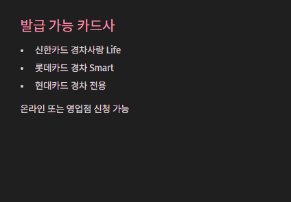 - 분실·갱신 시 기존 혜택은 자동 승계되지 않으므로 새로 등록해야 한다.