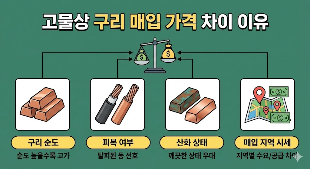 고물상에서 구리를 판매할 때는 다음 요소가 가격을 결정합니다.