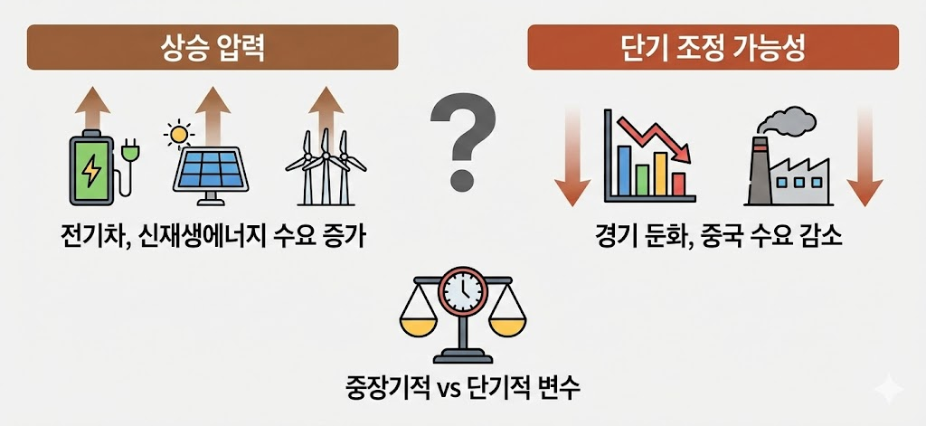 다만 경기 둔화나 중국 수요 감소 시에는 단기 조정 가능성도 존재합니다.