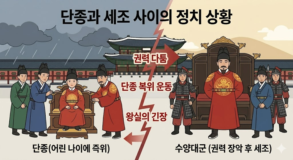 錦城大君) 은 단종 복위 움직임과 연관되었다는 이유로 정치적 의심을 받았습니다. 단종을 다시 왕위에 올리려는 시도가 여러 차례 있었고, 왕실 내부 긴장도 계속되었습니다.