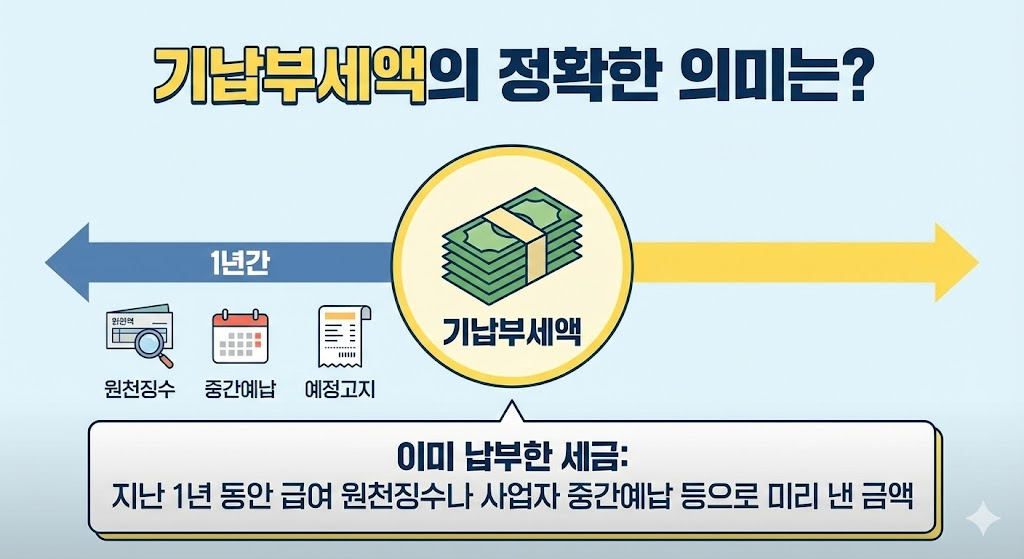 처음엔 어려운 용어 같지만, 알고 나면 기납부세액은 단순히 '내가 이미 낸 세금'이라는 개념입니다. 세금 신고나 연말정산의 환급 여부를 가르는 중요한 숫자죠.