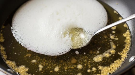 butter 가 끓기 시작하면 표면에 흰 거품이 올라옵니다.