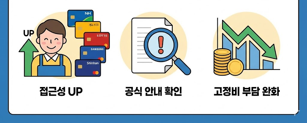 농협카드를 포함한 주요 카드사를 통해 신청할 수 있다는 점에서 접근성이 높아졌다는 느낌이 듭니다. 다만 카드사별 신청 절차가 조금씩 다를 수 있으니, 반드시 공식 안내를 기준으로 확인하는 것이 중요합니다. 소상공인 경영안정바우처는 작은 금액처럼 보여도 고정비 부담을 줄이는 데 실질적인 도움이 될 수 있습니다.