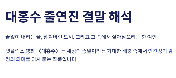 2025년 공개된 넷플릭스 영화 <대홍수>는