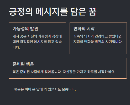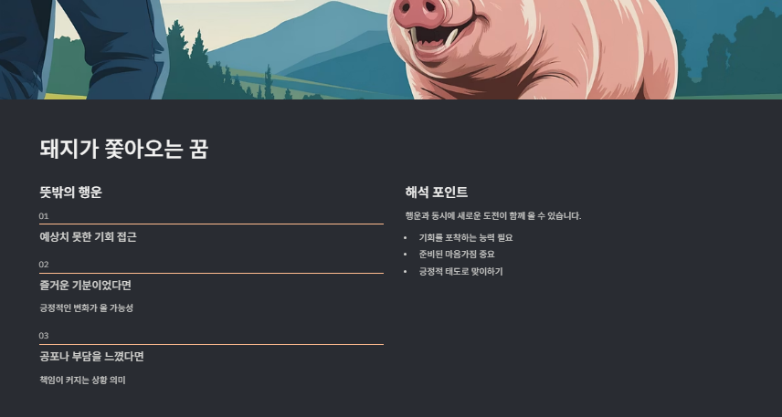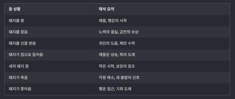 돼지 꿈을 정리하면서 느낀 점은, 이 꿈이 단순히 복과 재물의 상징을 넘어