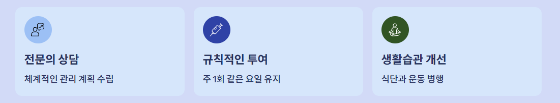BMI, 혈당, 혈압 등을 정확히 측정한 뒤 시작하는 것이 안전합니다. 처방이 어렵지 않지만, 꾸준한 주사 관리와 식습관 개선이 병행되어야 부작용 없이 목표 체중에 도달할 수 있습니다.