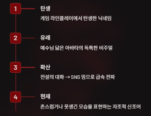 이 단어는 단순한 별명이 아니라, 한 게임에서 시작되어 인터넷 밈(meme)으로 확산된 흥미로운 표현이에요.