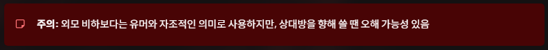 유머로 쓰이지만, 상황에 따라 누군가에게 상처를 줄 수 있는 표현이기도 합니다.