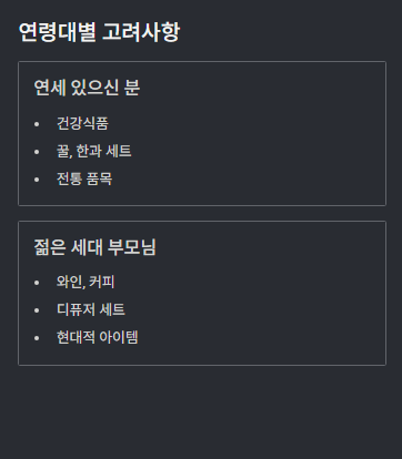 | 식사 대접 감사용 | 3만~5만 원 | 커피, 수입 과자, 티 세트 |