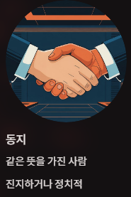 | 동지 | 같은 뜻을 가진 사람 | 진지하거나 정치적 |