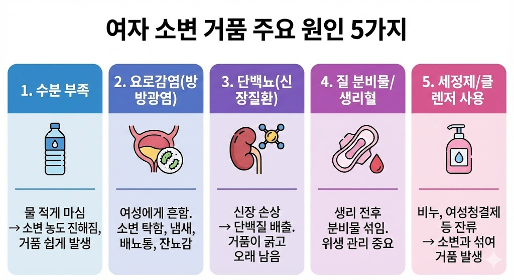 특히 여성의 경우 호르몬 변화나 위생 상태, 질환 등 다양한 요인으로 인해 거품뇨가 나타날 수 있습니다. 이번 글에서는 여성 소변 거품의 주요 원인과 관리 방법, 병원 진료가 필요한 경우를 쉽게 정리했습니다.