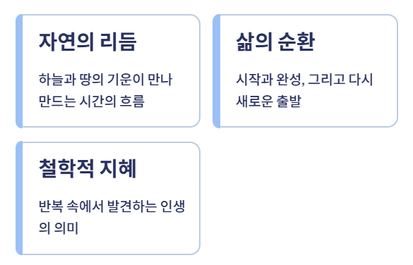 자연의 순환과 인생의 주기를 표현한 철학적 상징이기도 합니다.