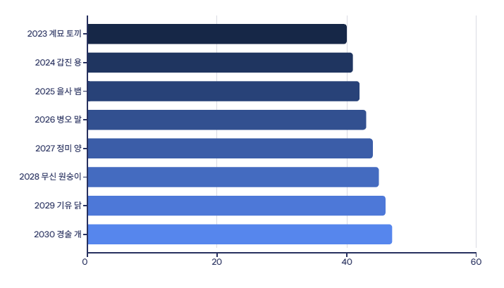 예를 들어, 2027년은 정해년(돼지띠), 2028년은 무자년(쥐띠)로 이어지는 식이죠.
