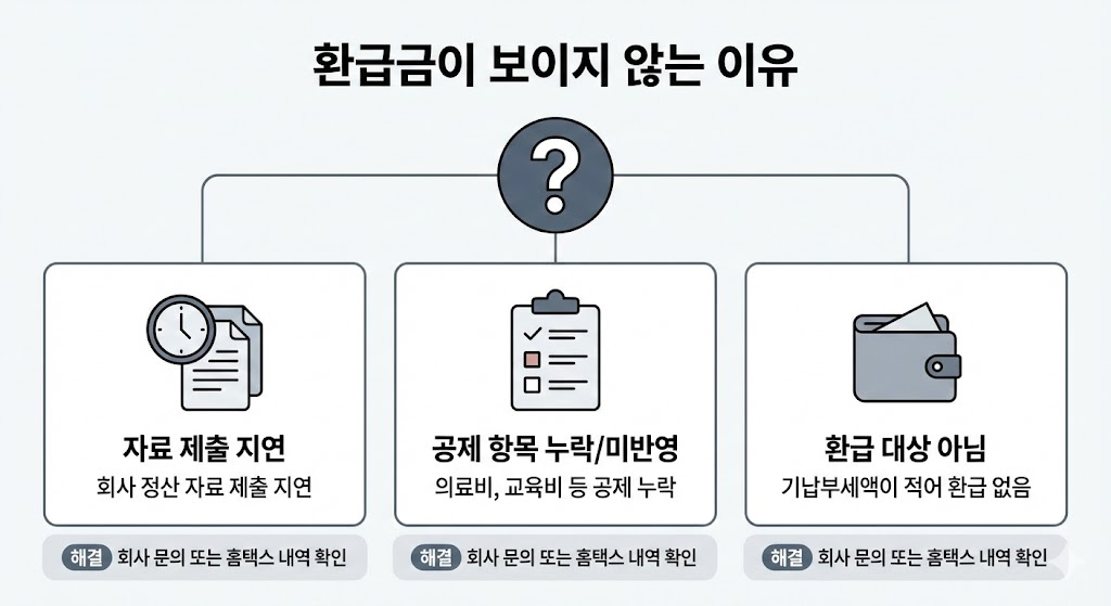 이럴 때는 회사 회계 담당자나 홈택스 공제 내역을 다시 확인하는 것이 좋습니다.