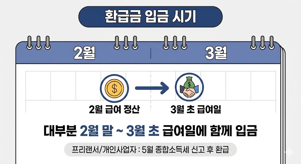 대부분의 근로자는 회사에서 2월 급여 정산 시점에 함께 환급금을 지급받습니다.