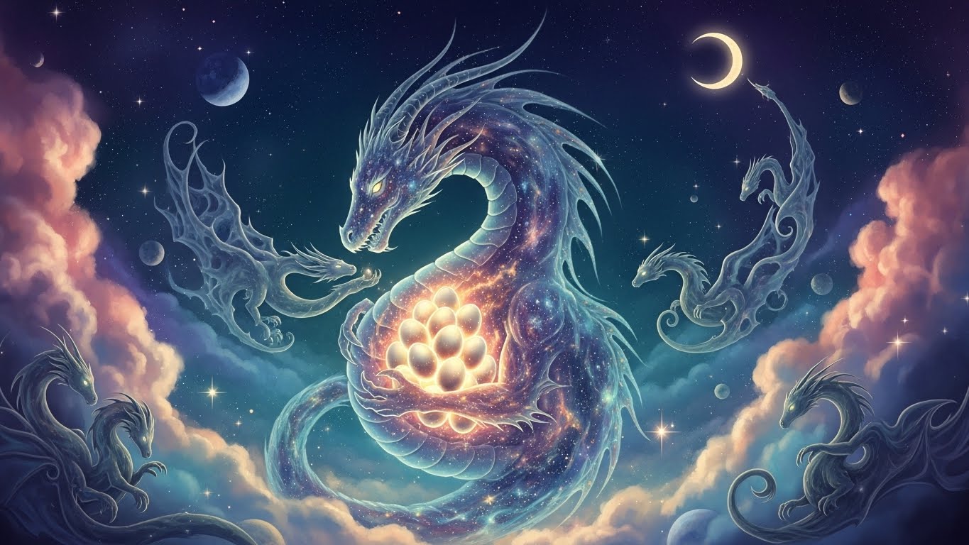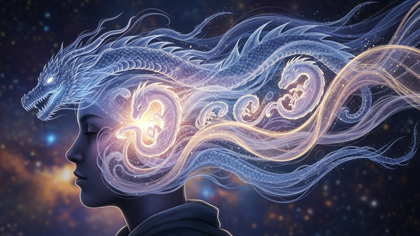 A. 용은 하늘과 생명의 상징으로, 강한 복과 명예를 의미합니다. 꿈속 용은 귀한 자녀의 탄생을 암시하며, 행운과 번영이 함께 들어오는 시기를 뜻합니다.