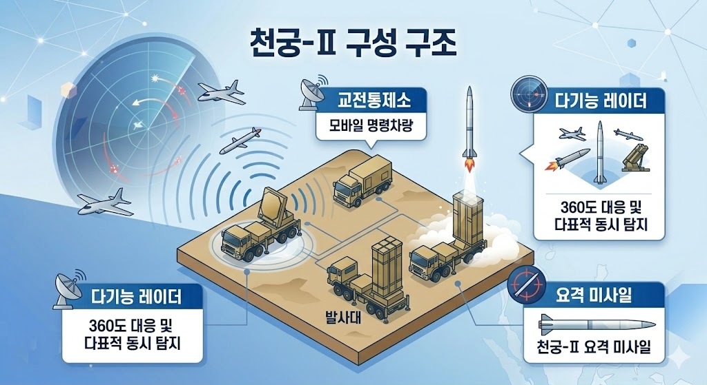 천궁-Ⅱ는 단순 미사일이 아니라 방공 시스템 전체를 포함한 체계입니다.