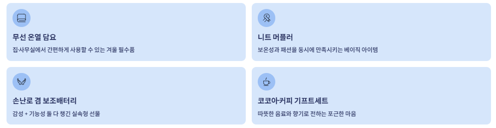 어떤 선물이 가장 따뜻하고 센스 있게 다가올지,