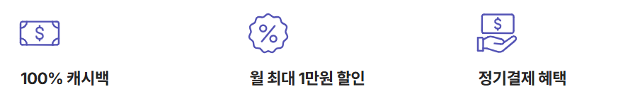 OTT 정기결제 100% 캐시백 또는 월 최대 1만 원 할인 혜택을 제공합니다.