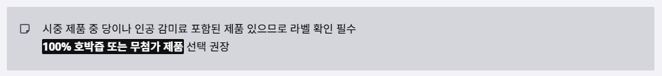 라벨을 꼭 확인하고 100% 호박즙 또는 무첨가 제품을 선택하는 것이 좋습니다.