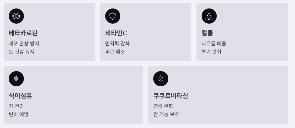 | 베타카로틴 | 세포 손상을 막고 눈 건강 유지 |