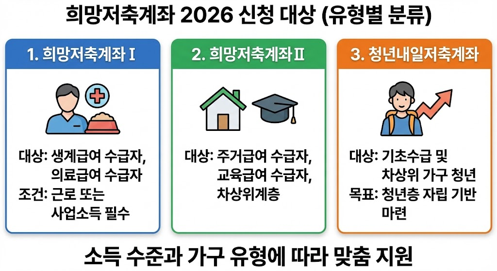 | 희망貯蓄계좌Ⅰ | 생계·의료급여 | 월 최대 30만 원 |