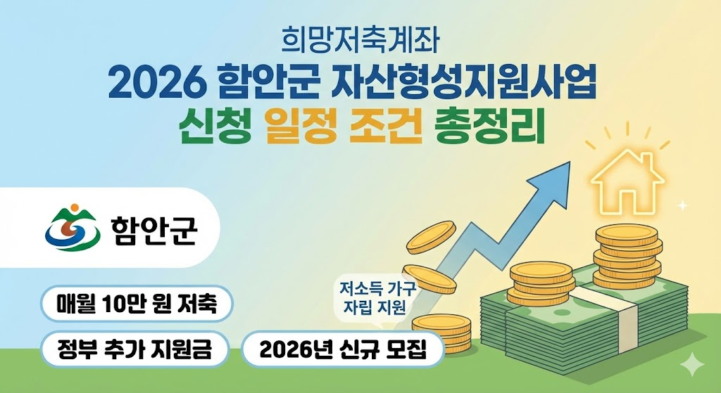 저소득 가구의 자산 형성과 자립을 돕기 위한 희망저축계좌 2026 모집이 시작된다. 함안군은 근로소득이나 사업소득이 있는 가구를 대상으로 2026년 자산형성지원사업 신규 참여자를 모집한다고 밝혔다. 매달 10만 원 이상 저축하면 정부가 추가로 지원금을 적립해주는 구조라 관심이 높다. 이번 글에서는 희망저축계좌 2026 신청 대상, 지원금 금액, 모집 일정까지 한 번에 정리해본다.