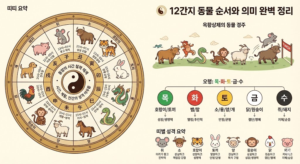 오늘은 12간지의 동물 순서와 의미, 그리고 각 띠가 가진 상징적 특징까지 알기 쉽게 정리해볼게요.