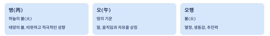 병(丙)은 불의 기운을, 오(午)는 말을 뜻하죠.