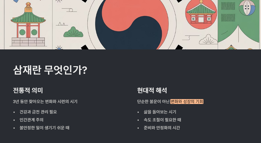 하지만 요즘은 단순히 운이 나쁘다는 의미보다, 변화와 주의가 필요한 시기로 받아들이는 것이 일반적입니다.