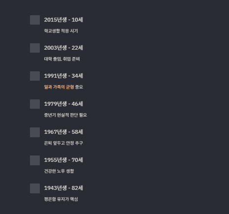 | 출생년도 | 2026년 나이(연나이) |