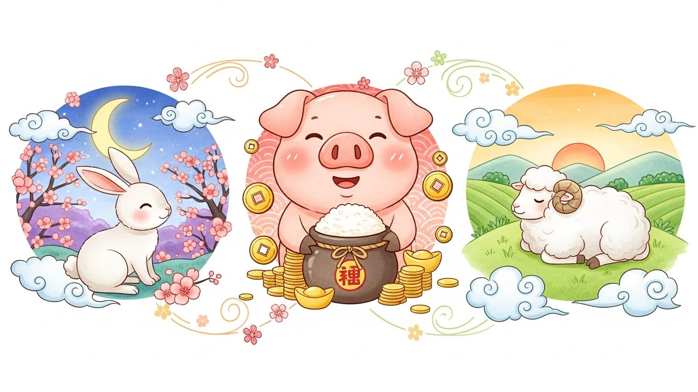 2026년 3재 띠인 돼지·토끼·양띠에게는 지금이 바로 인생을 정리하고 안정화하는 시기일 수 있겠죠.