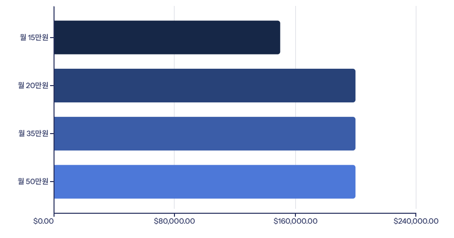 | 월 15만 원 | 15만 원 | 12개월 | 180만 원 |