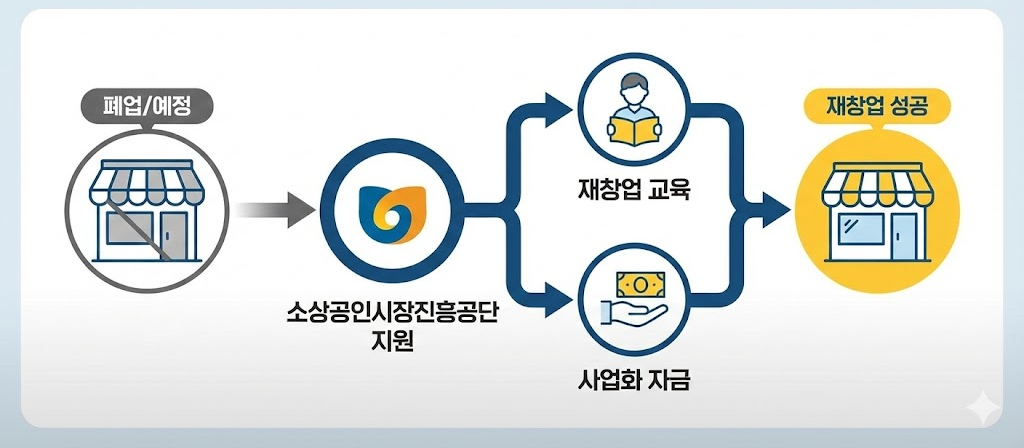 희망리턴패키지는 폐업 또는 폐업 예정 소상공인의 재기를 지원하는 종합 프로그램입니다. 그중 재기사업화는 다시 창업을 준비하는 분들을 위한 지원 과정입니다.