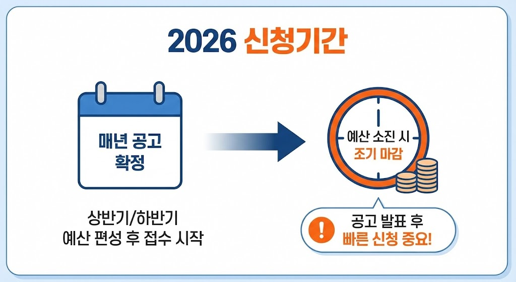 A. 2026년 공고를 통해 별도 안내되며, 예산 소진 시 마감될 수 있습니다.