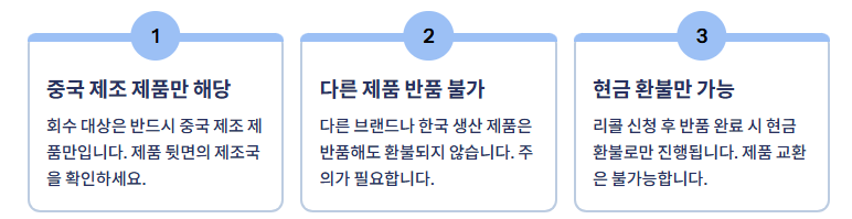 • 회수 대상은 반드시 중국 제조 제품만 해당됩니다.